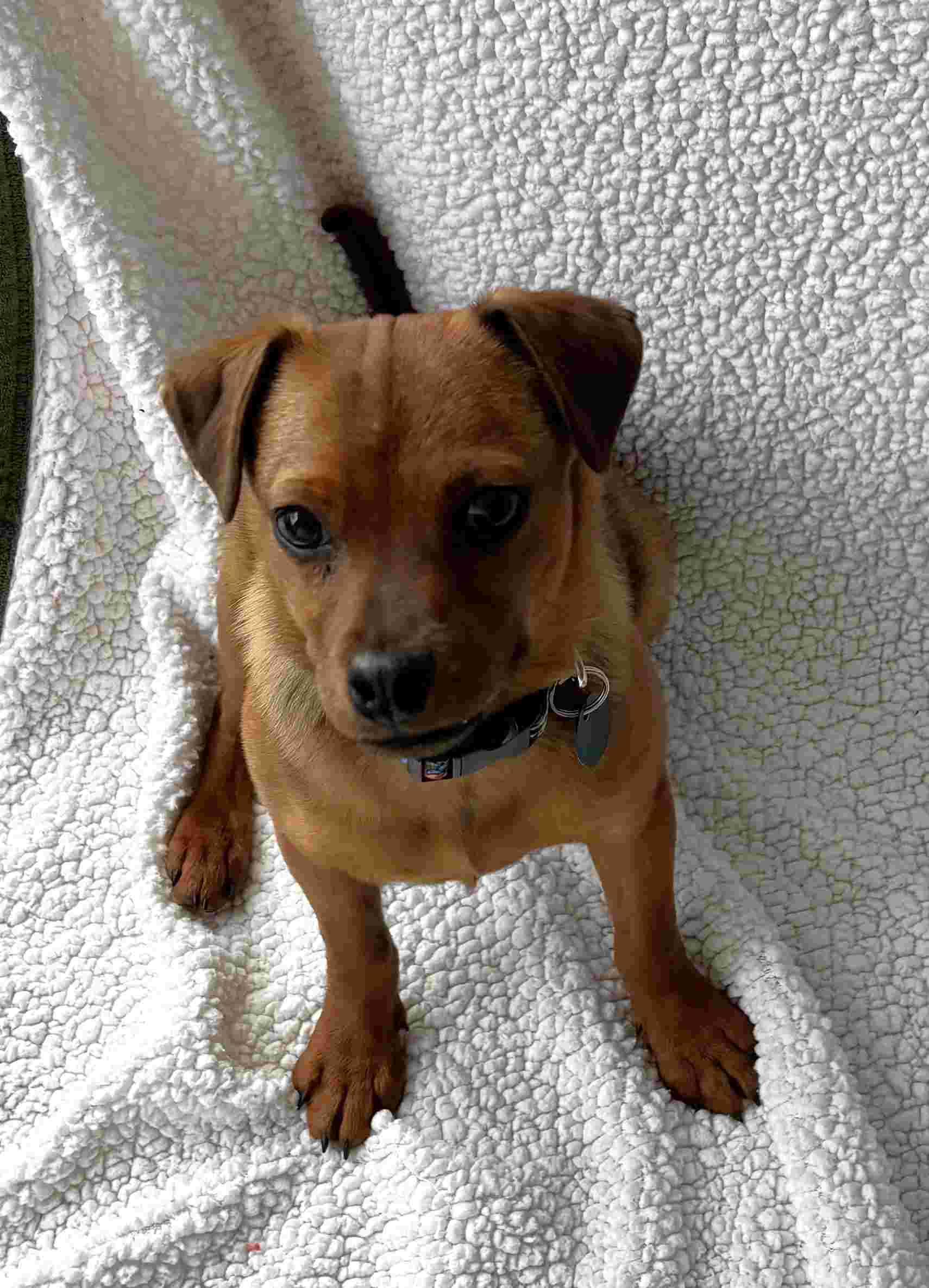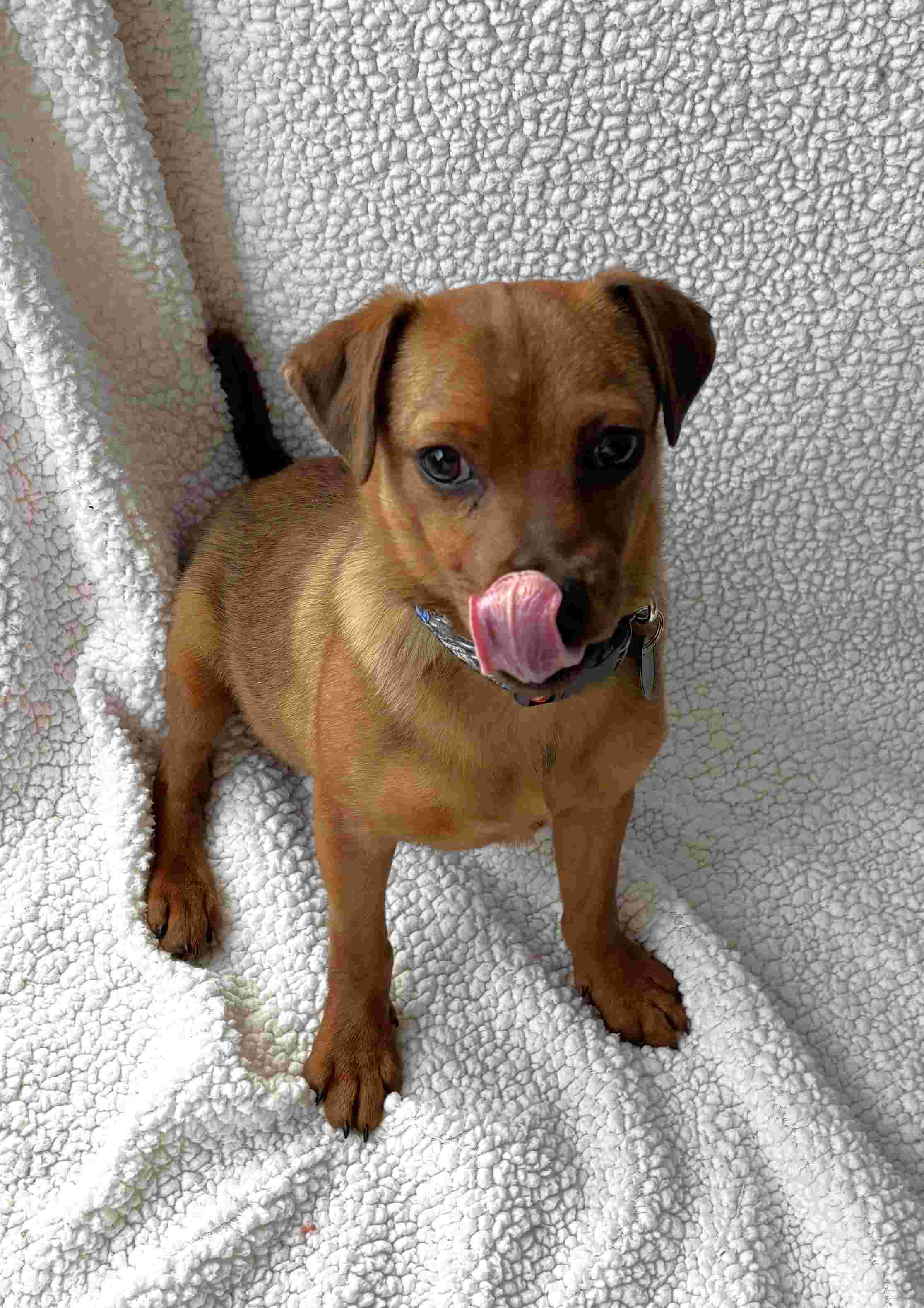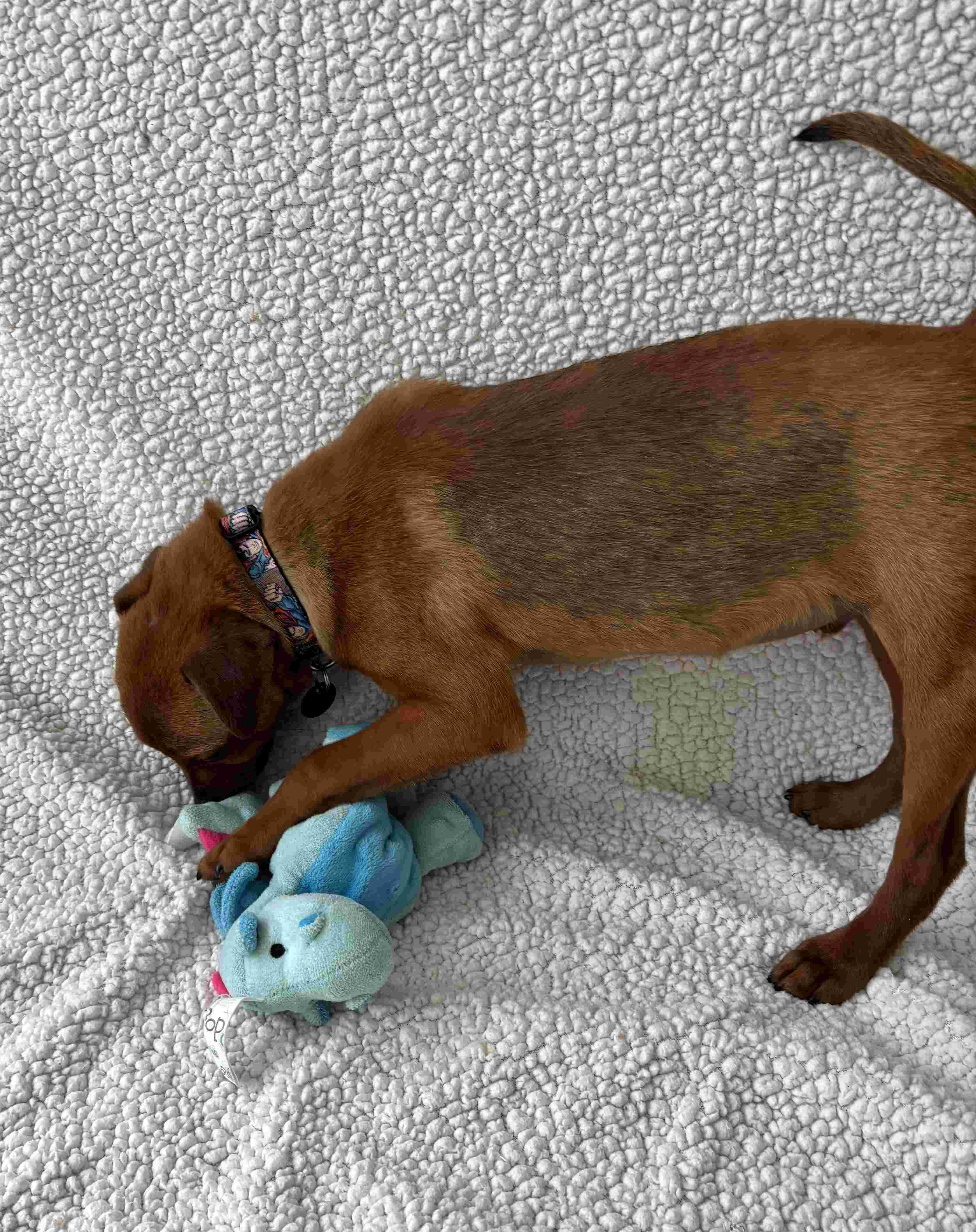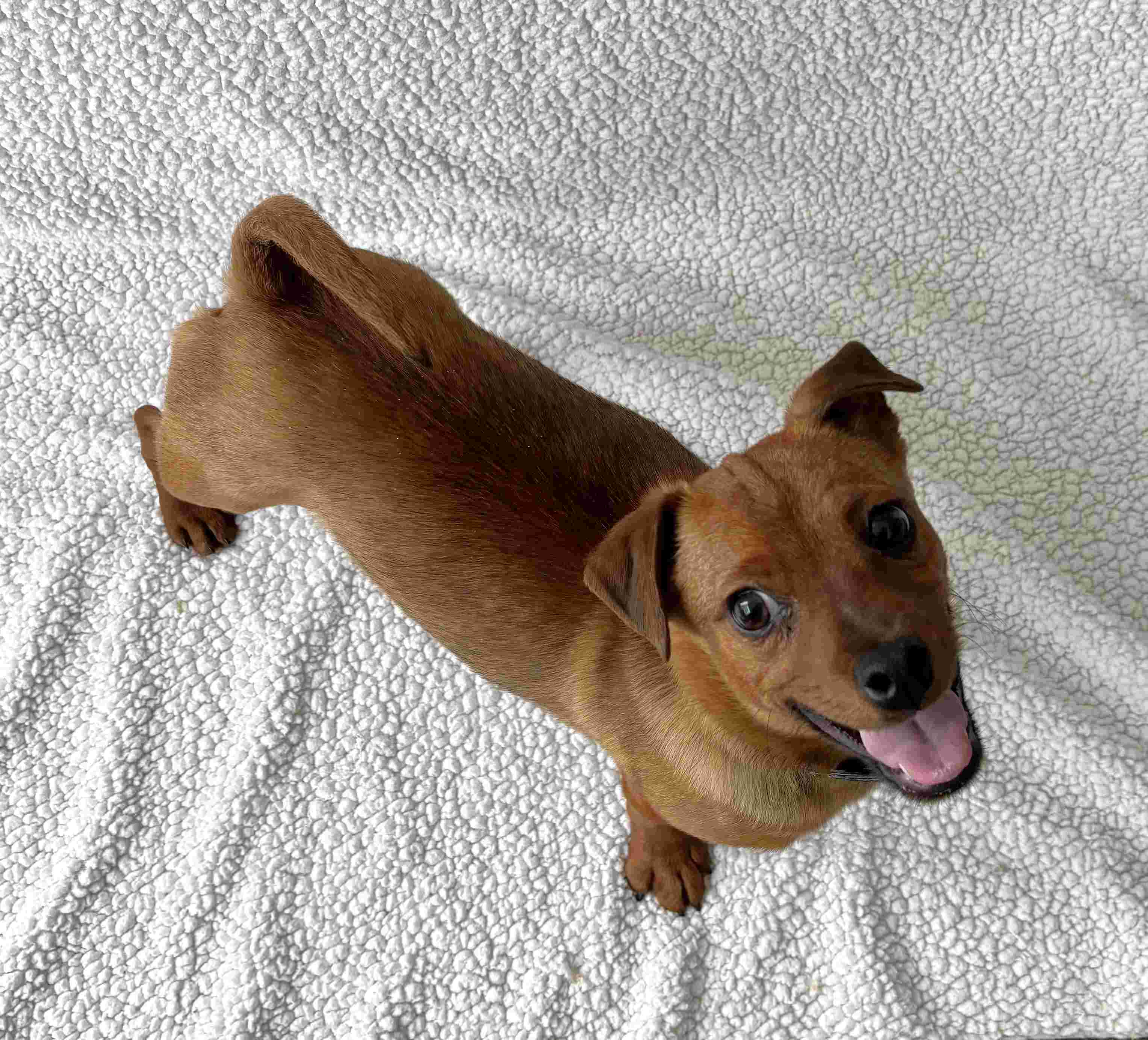 When he first arrived, he was understandably a bit nervous, but it didn’t take long for his sweet, affectionate nature to shine through. Grant is a super funny, playful, and silly boy who wins hearts instantly with his antics and boundless energy. Though small in size, Grant is an active and lively pup who loves to run, zoom around, and enthusiastically greet his people by running up, over, and all around — he’s full of puppy energy and joy! He can be a bit jumpy and mouthy at times, so ongoing training to help him learn manners will be important for his development. He thrives on playtime and absolutely loves his toys, though softer toys may need supervision as he can sometimes rip them apart in his excitement.