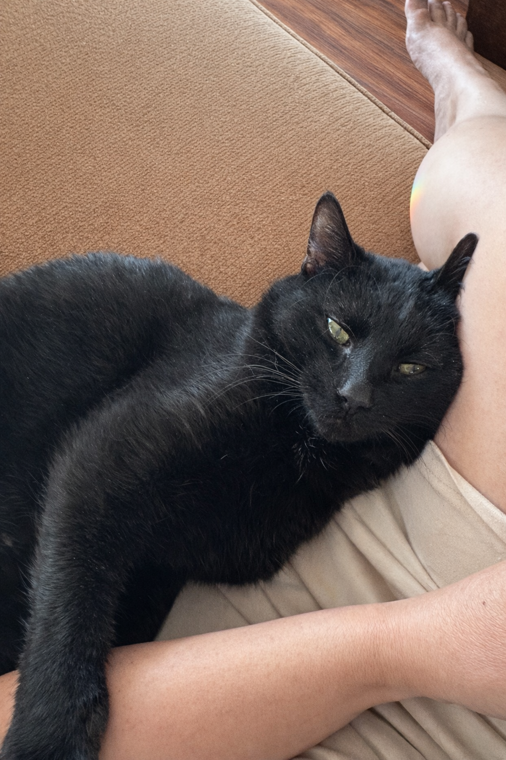 I absolutely love cuddles, snuggles, and scratches. Make eye contact with me and I am there! I should mention that I am currently shedding quite enthusiastically. My fine hairs have been discovered on the bed, couch, plants, my foster mum’s clothing, and occasionally her face. She brushes me often — sometimes in the bathtub to contain the floating fluff cloud. This could be seasonal shedding or most likely stress from my big life changes. Time will tell.