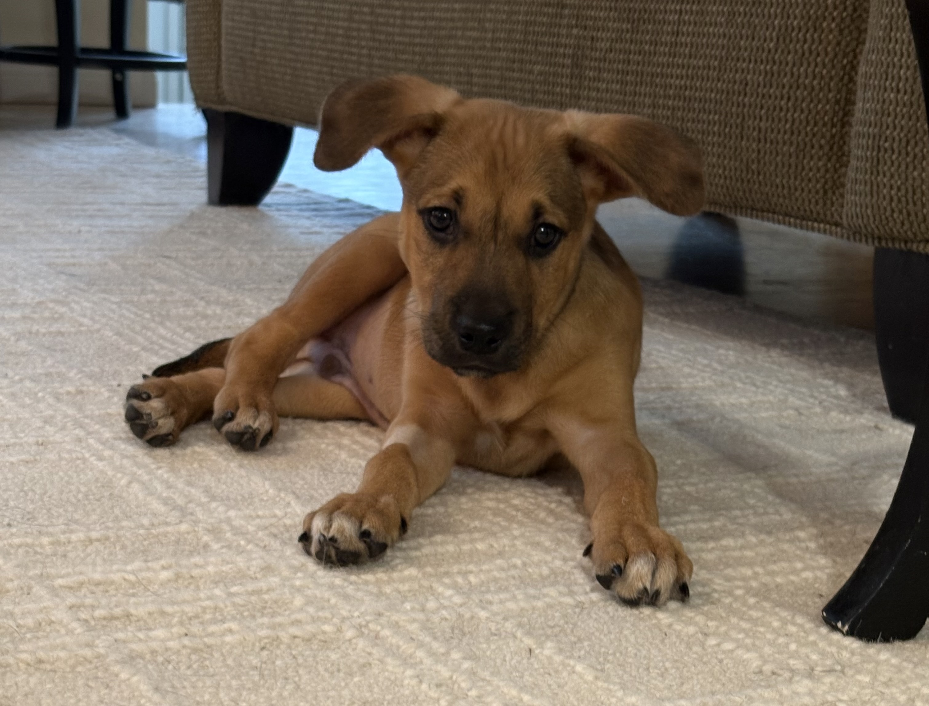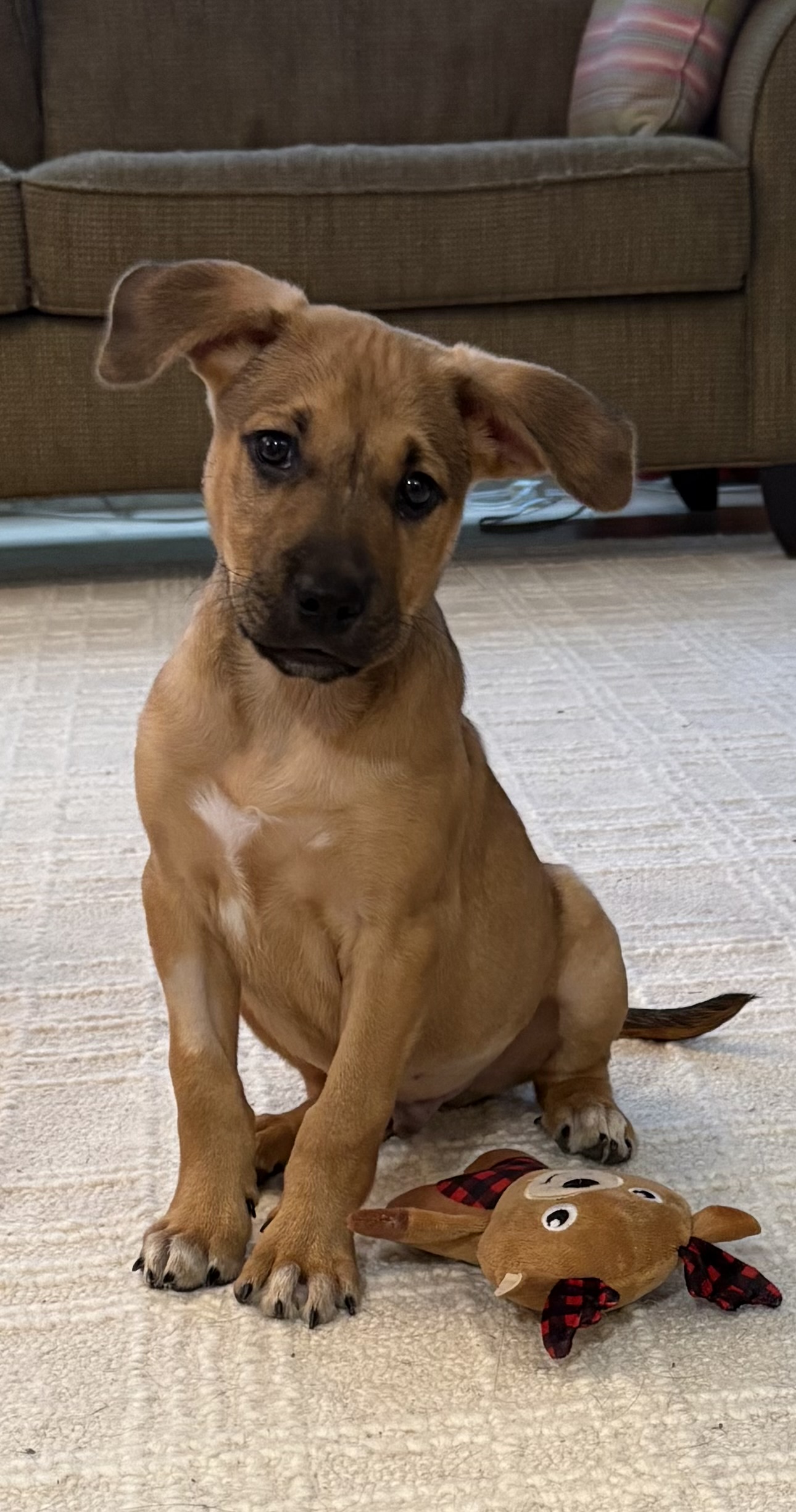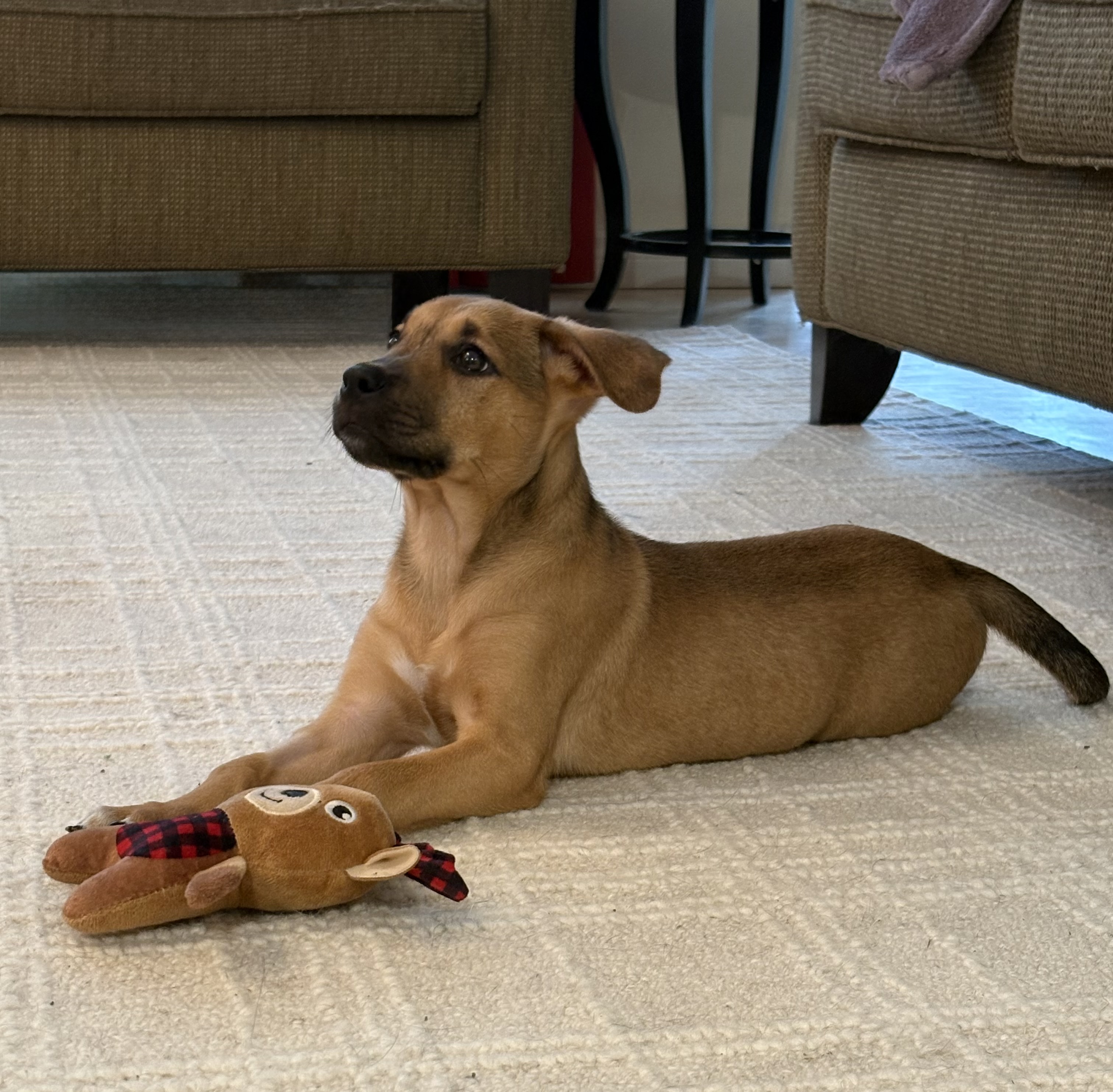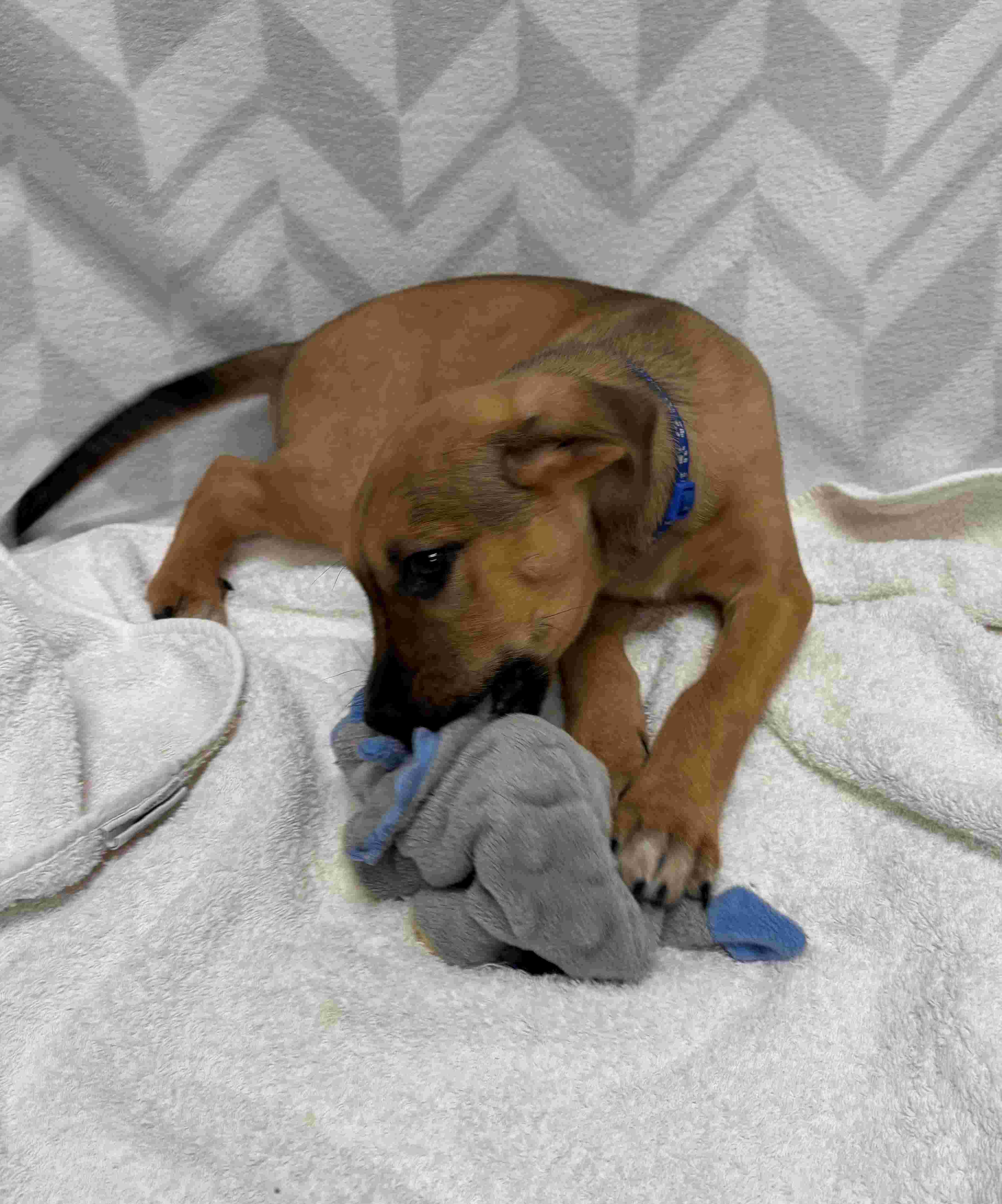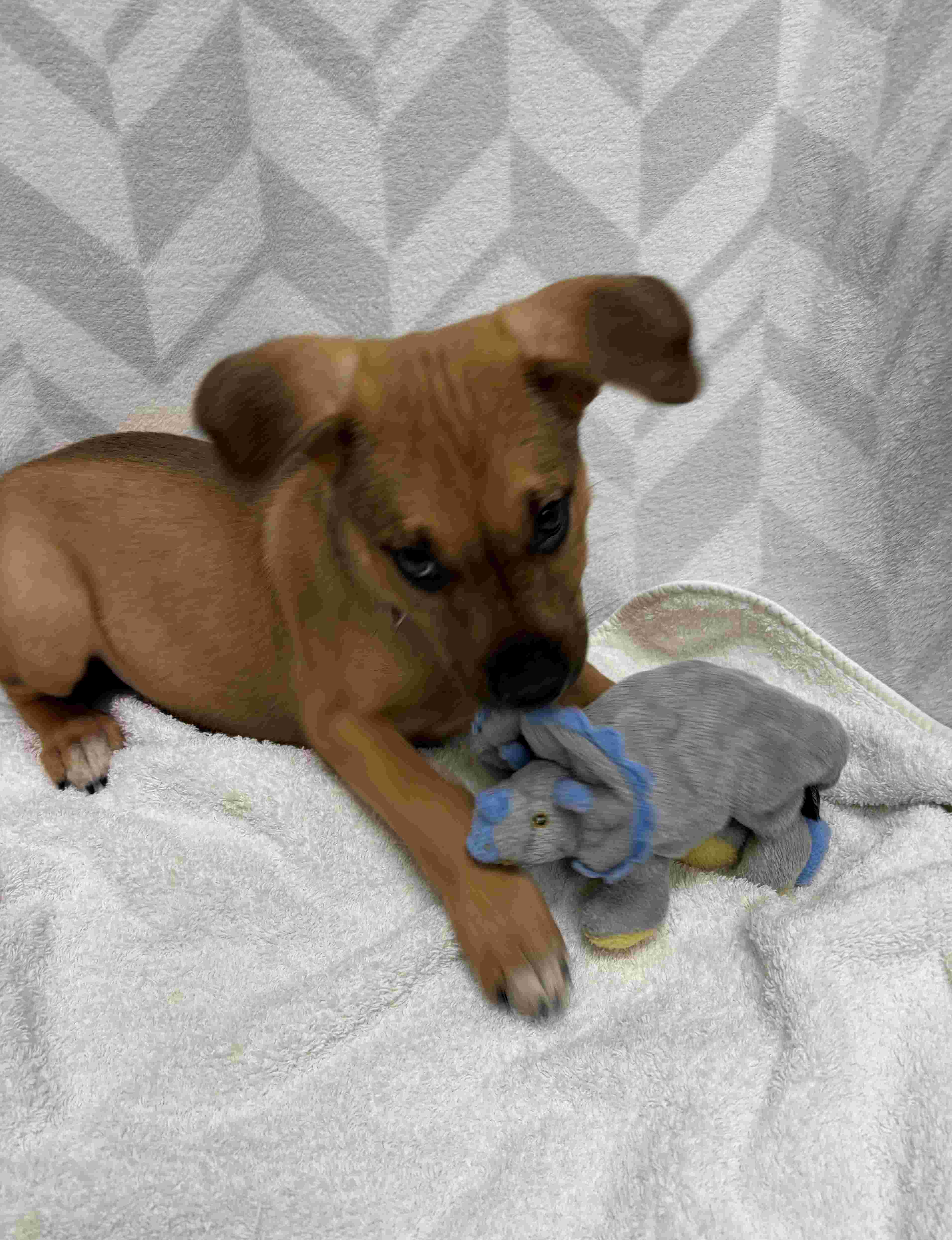 This sweet boy is equal parts playful explorer and professional nap enthusiast. One minute he’s happily tossing a toy in the air or trotting after you with bright curiosity, and the next he’s curled up in a cozy spot, recharging for his next adventure.
