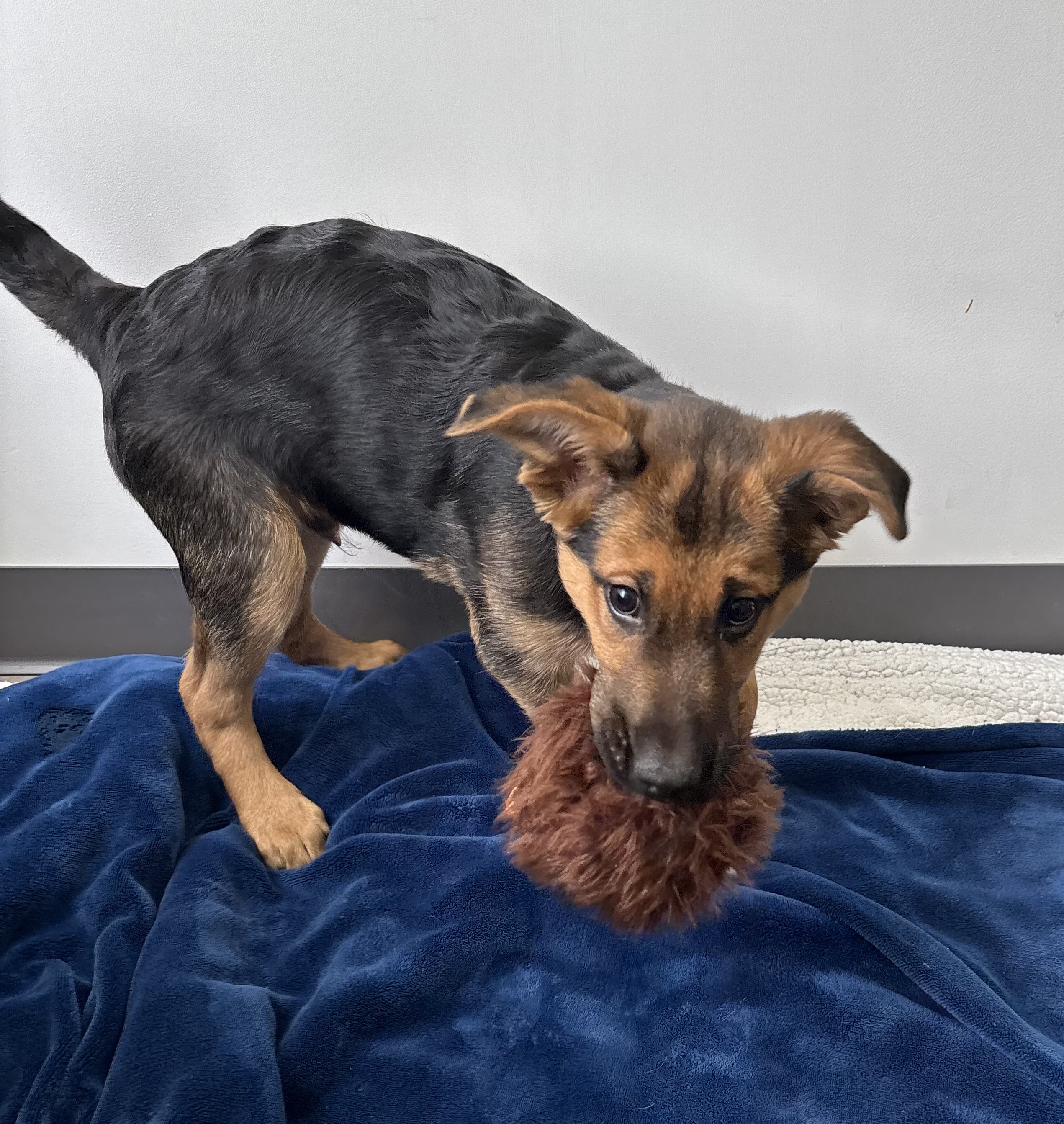Everest thrives on interaction, play, and exploration, and he’ll do best with a family that can provide plenty of physical exercise and mental stimulation to keep him happy and engaged. As a young puppy, Everest is still learning all the important life skills. He will benefit from continued training and socialization, including house training, impulse control, and learning appropriate ways to channel his excitement (like his enthusiastic greetings!). Providing a variety of brain games, toys, and supervised chews will help him develop into a well-mannered adult.