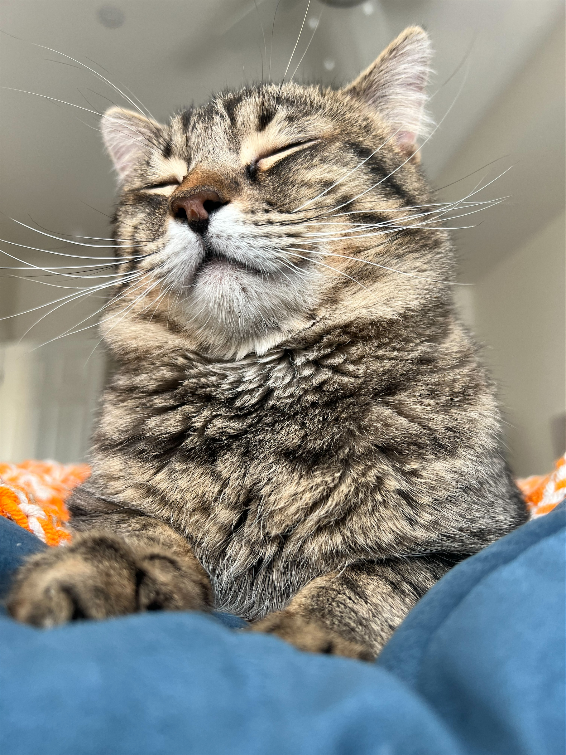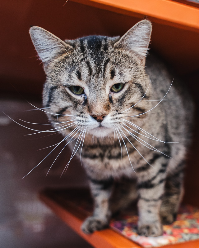 He’s playful and curious but his true loves are food and attention. He enjoys being picked up, hanging out with his humans, and soaking up all the affection he can get.