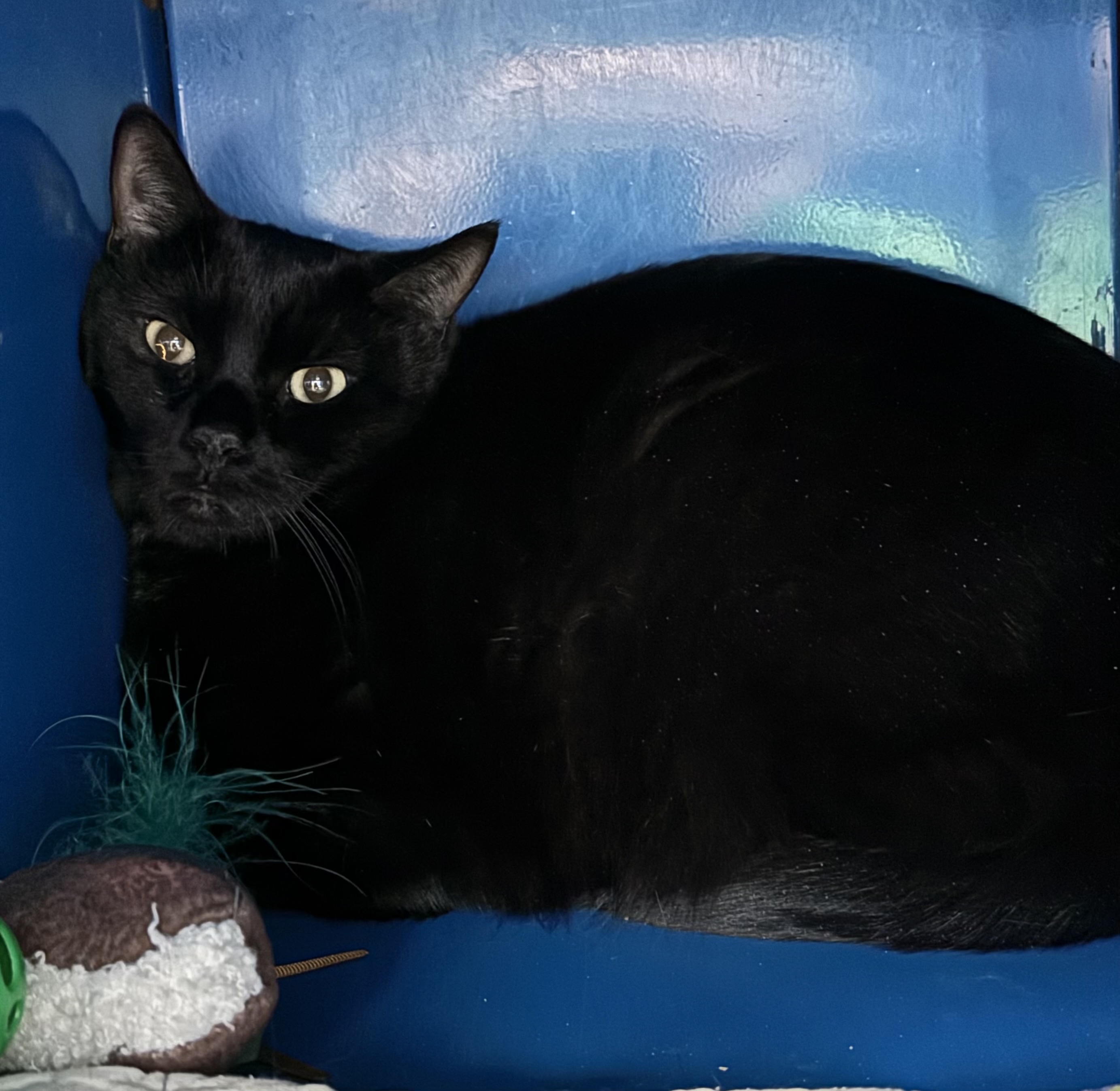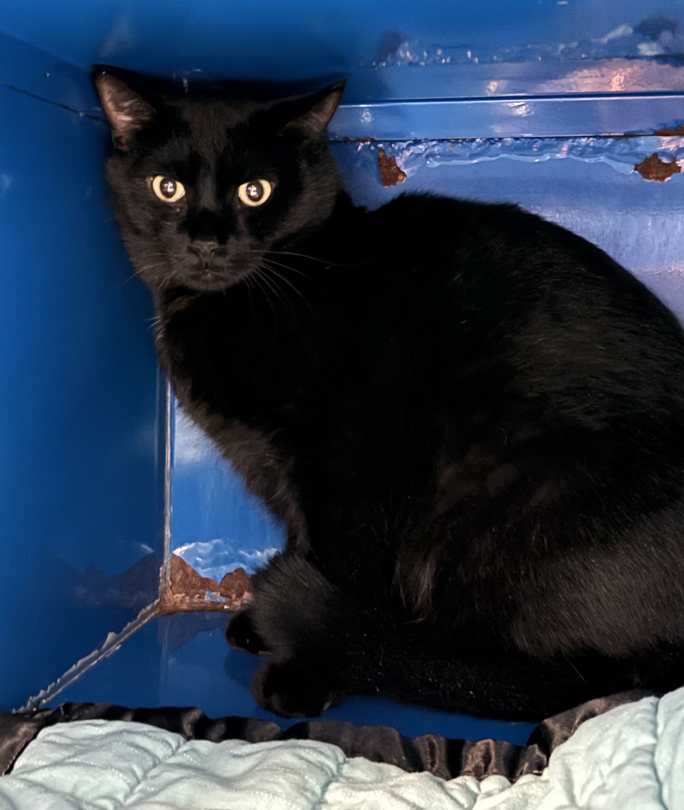 Blacky is a gentle and sensitive boy who is still finding his footing in a brand-new environment. Right now, the world feels a little overwhelming for him, and he prefers the safety of a quiet, cozy space where he can observe from a distance. While he may seem shy at first, there are small, hopeful signs of curiosity—little moments where he peeks out, quietly taking in what’s going on around him.