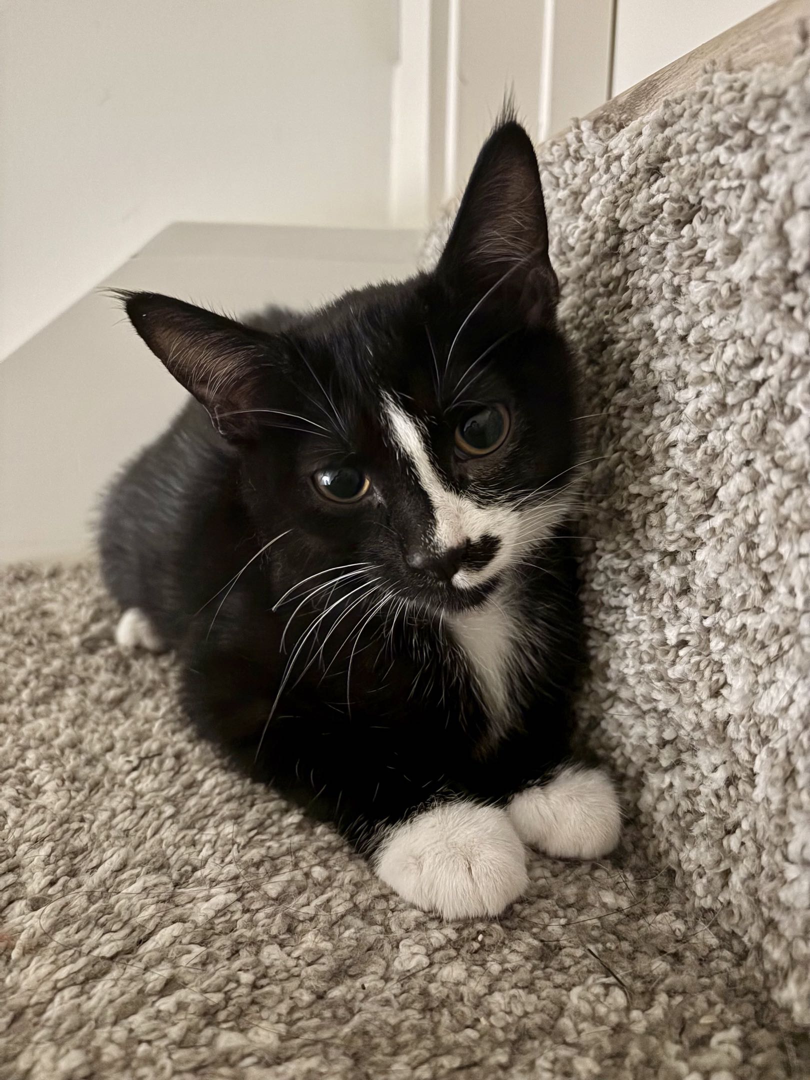 Luigi is a curious kitten with a sweet nature and a playful spark that continues to grow every day. He can be slightly cautious in new situations, though his bravery shows through before long. He approaches new situations thoughtfully, taking a moment to watch and learn before jumping in. He enjoys being part of the moment in his own thoughtful way, and is always on the lookout for a cozy, snuggly spot when its time to relax.
