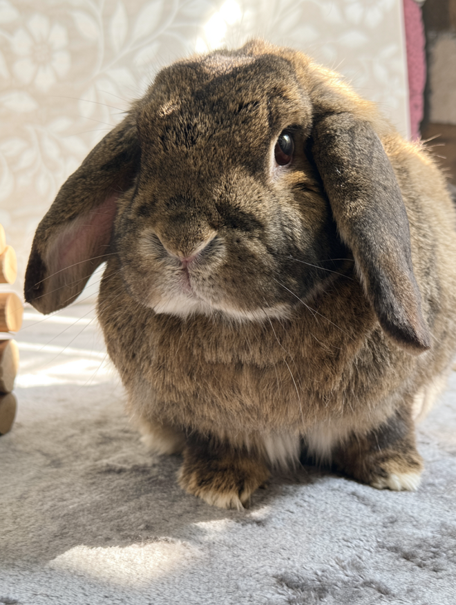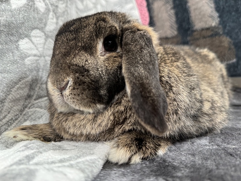 With fur like velvet and a heart to match, Georgie is a true cuddle-connoisseur. His gentle, loving personality is even bigger than his waistline, and nothing makes him happier than the human touch! While he enjoys toys and tunnels, he truly lives for long petting sessions, which is the perfect time to help him with grooming those hard-to-reach spots. Between those velvety lop ears and his pillowy curves, there is just so much of Georgie to love!