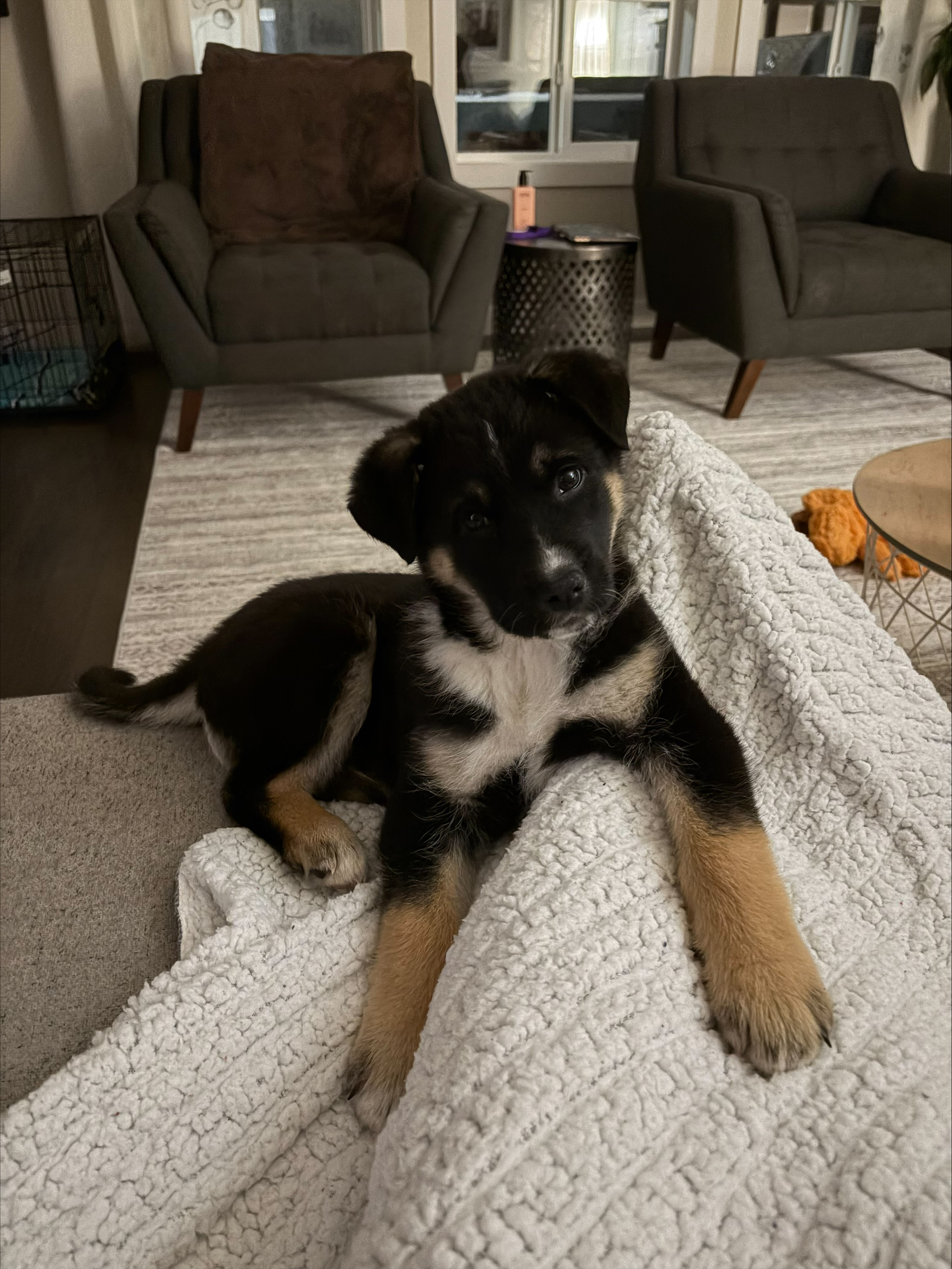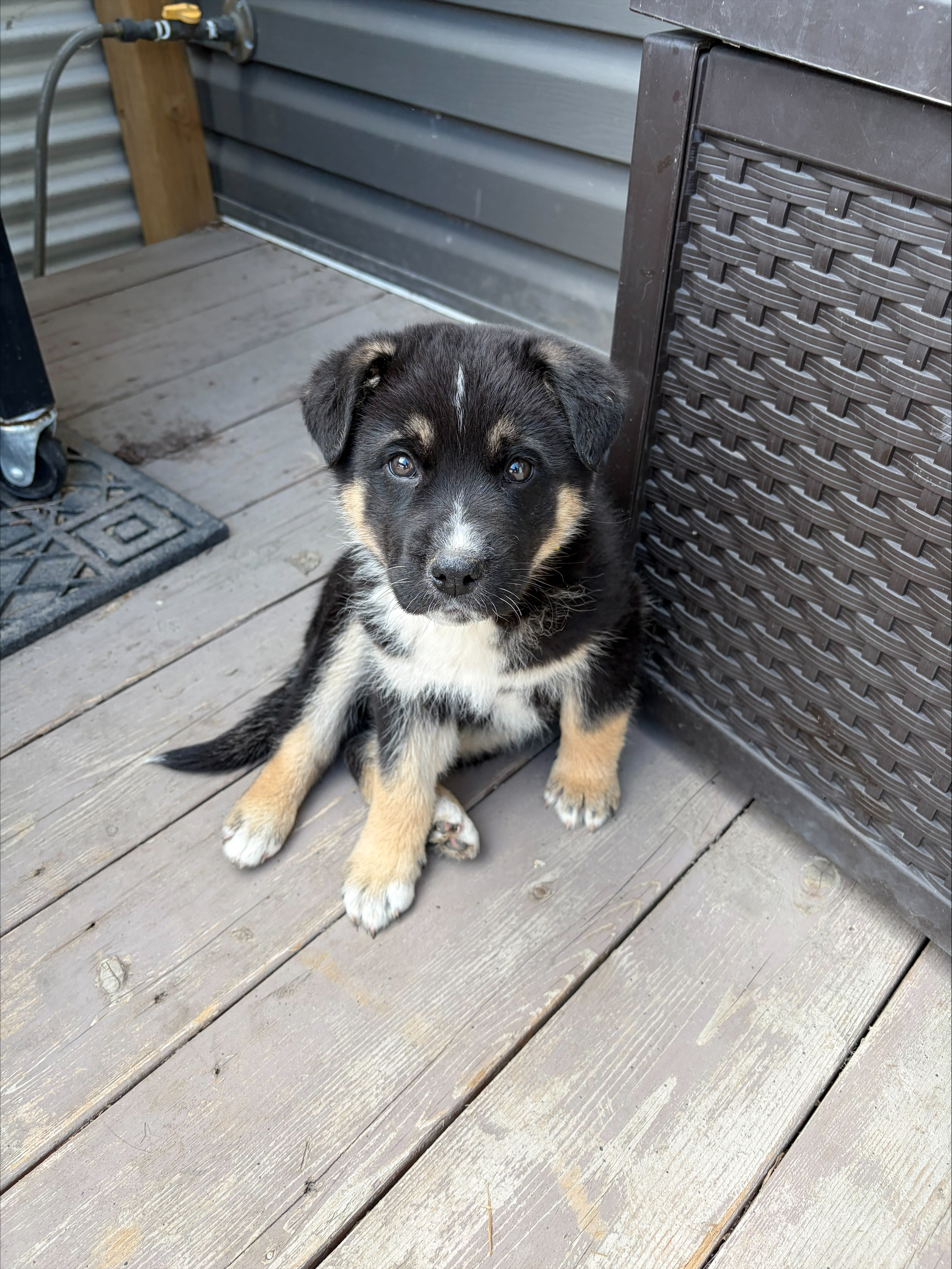 He’s doing so well with cats and other dogs, and his potty training is coming along beautifully. He’s already ringing the bells to go outside, which is such an impressive start for such a young puppy. He’s food motivated, sits nicely, and is eager to learn, making him such a joy to work with.