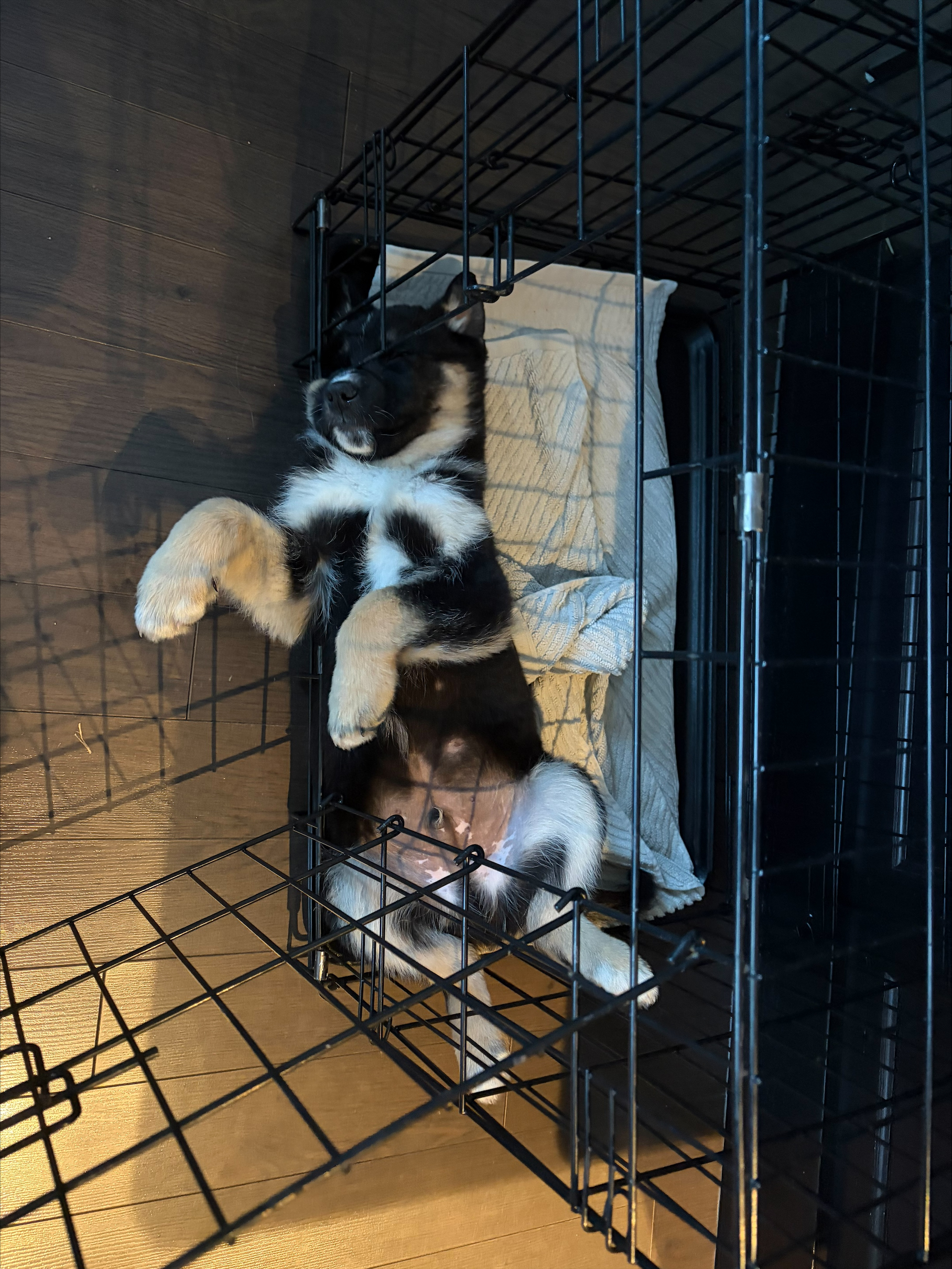 He wasn’t too sure about his kennel at first, but with gentle encouragement and a few treats, he’s learning quickly and now settles in much more happily. He’s still waking once during the night, which is completely normal for his age, but he’s already making such great progress and doesn’t seem far off from a full night’s sleep.