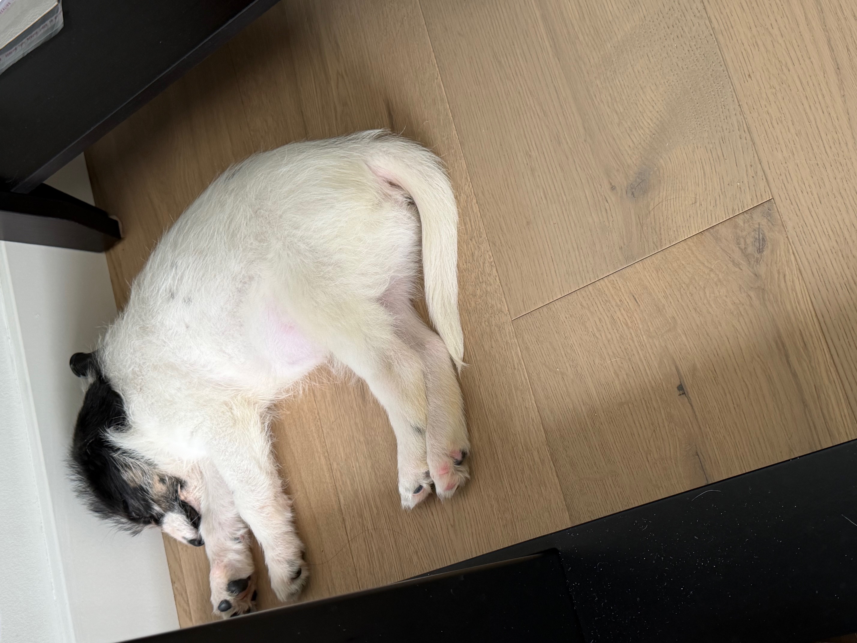 Like any young pup, he’s still figuring out the world around him, including the art of potty training and the challenge of sleeping through the night—but he’s making progress every day. When he’s not busy exploring or playing, Paul is a champion napper who happily recharges for his next adventure. He’s already grown fond of his crate, treating it as his own cozy little den where he can relax and feel safe.