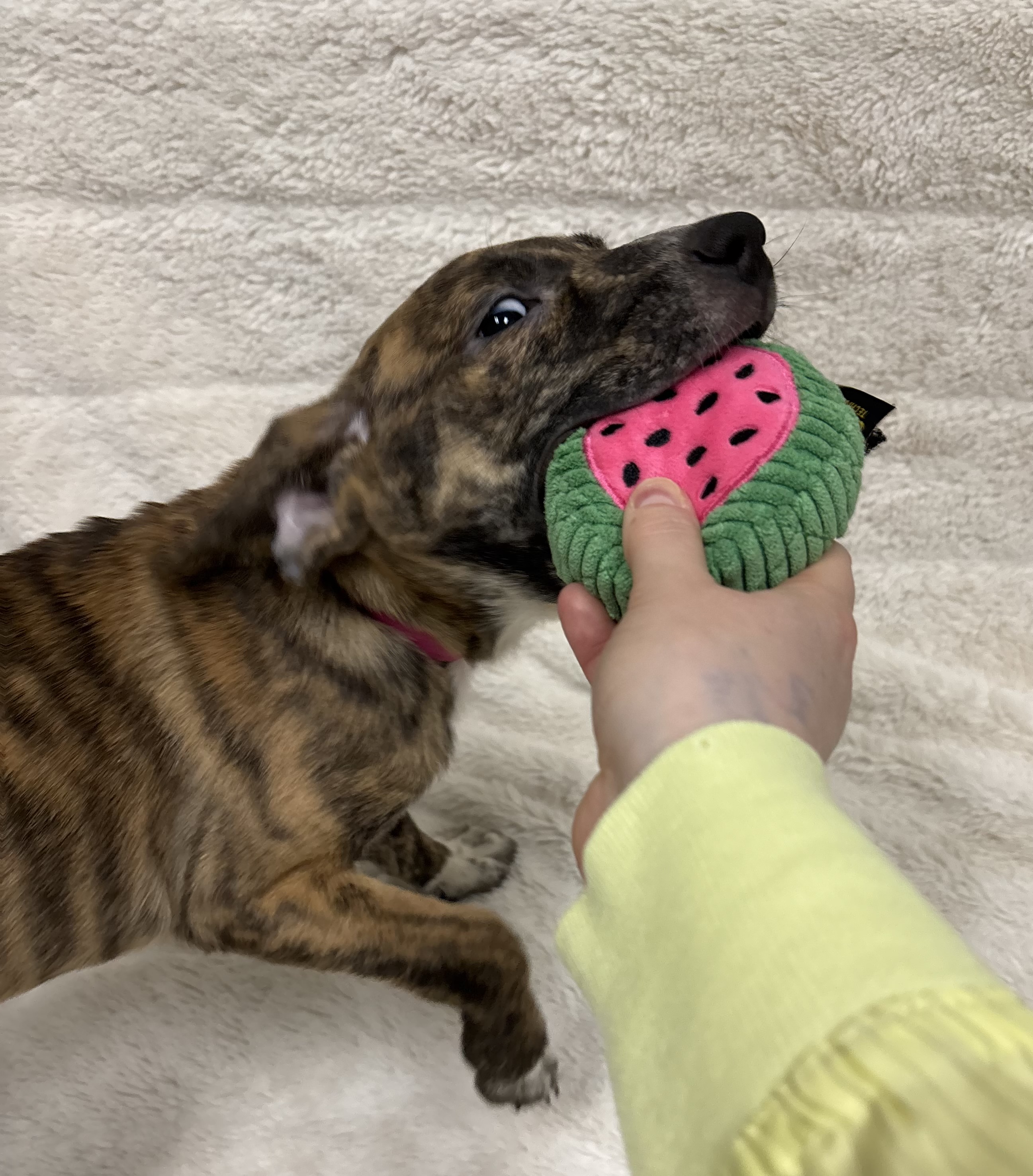 Like all puppies, Susan will need ongoing training and socialization to help her grow into her best self. She will benefit from support with house training, impulse control, and learning appropriate play behaviors, including mouthing. Susan will thrive in a home that can provide plenty of mental and physical stimulation, such as brain games, toys, and supervised chew activities. Positive and supervised interactions with children and other dogs will help her build confidence and good manners.