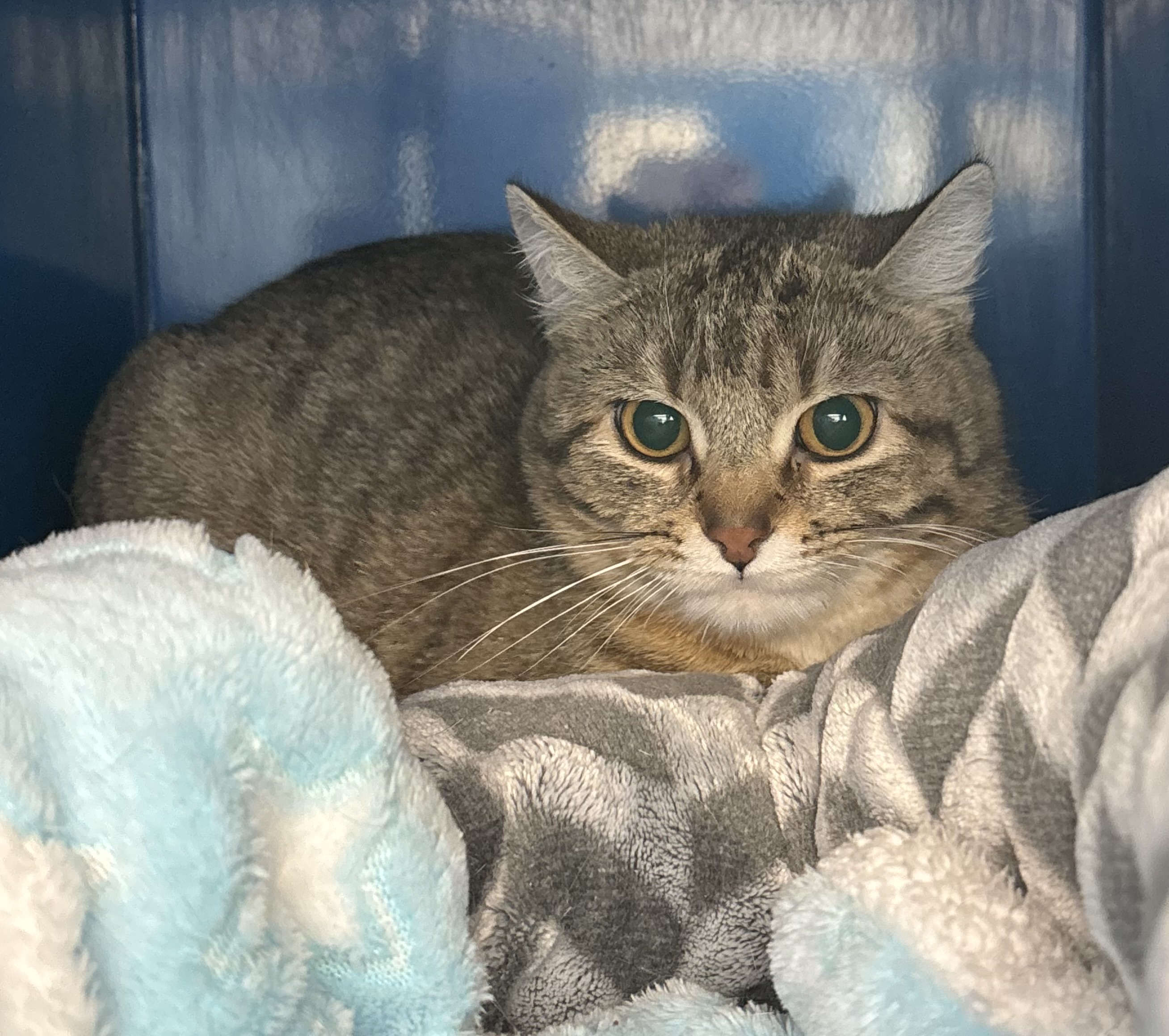 Zinnia is a delicate and sensitive girl who is still learning to feel safe in her new surroundings. Right now, she prefers the comfort and privacy of a cozy cubby where she can quietly observe the world around her. She’s taking things one step at a time, building confidence at her own pace. While Zinnia may seem shy at first, she has all the potential to blossom into a wonderful companion with patience, gentle care, and a calm environment. She would thrive in a quiet forever home where she can decompress, feel secure, and begin to come out of her shell.