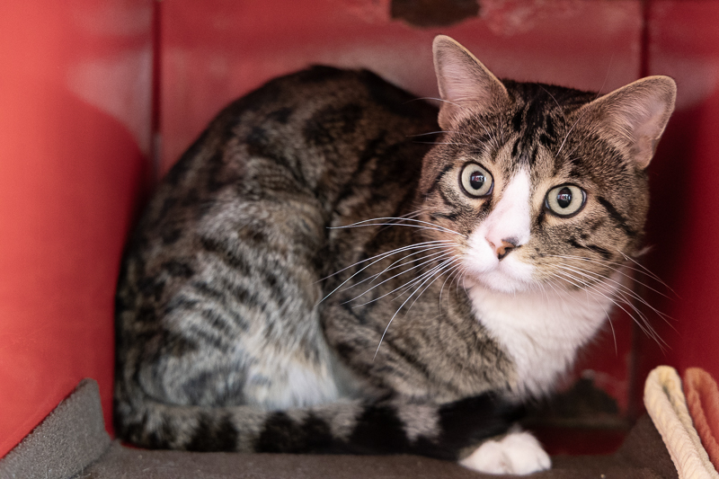 Mackerel is a gentle and sensitive boy who is looking for a calm, understanding home where he can feel safe and secure. He can be a bit shy in new environments and will need time to decompress, often preferring a quiet space of his own while he adjusts. With patience and a peaceful setting, Mackerel begins to show his curious nature, softly meowing to greet you once he’s feeling more comfortable. This sweet boy enjoys gentle interaction on his own terms and is open to soft pets as he builds trust with his people. He’s the kind of companion who forms meaningful bonds over time, rewarding patience with quiet affection and a tender personality that slowly shines through.