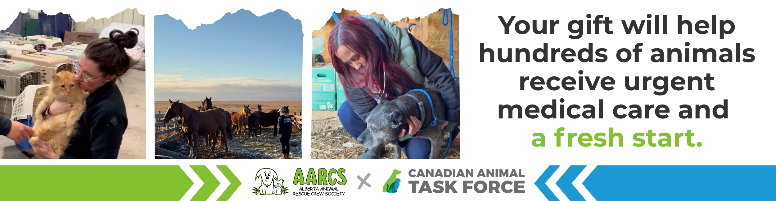 Your kindness is helping fund our Northern Alberta Rescue Mission in partnership with the Canadian Animal Task Force. Thanks to you, hundreds of animals will now be safe, get the medical care they need, fill their bellies with nutritious food and provide them safe and loving shelter.